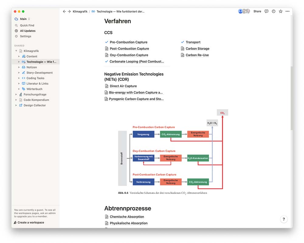 Furthermore, there would be an introduction to the relevance of the topic and an introduction to the subjects of transport, storage, or reuse from CO₂ as well as a place for critical and favorable voices from the scientific community.